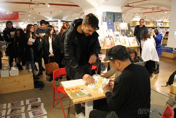当地时间10月29日晚,近百名米兰市民和汉语学习者齐聚米兰大教堂附近的拉菲德力奈利(La Feltrinelli)书店,大家热烈地欢迎著名中国漫画家李昆武的到来,拉开了本次读者见面会的序幕。