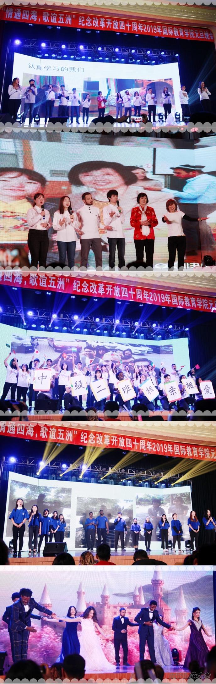 迎着新年的号角,踏着新时代的康庄大道,12月21日晚6点,辽宁师范大学校礼堂张灯结彩,美轮美奂。国际教育学院“情通四海歌谊五洲——庆祝改革开放四十周年”新年晚会如期而至。国际教育学院关伟院长、姜凤岐书记、杨文升副院长、曹儒副院长、李彦明副院长及全体师生莅临本次晚会。