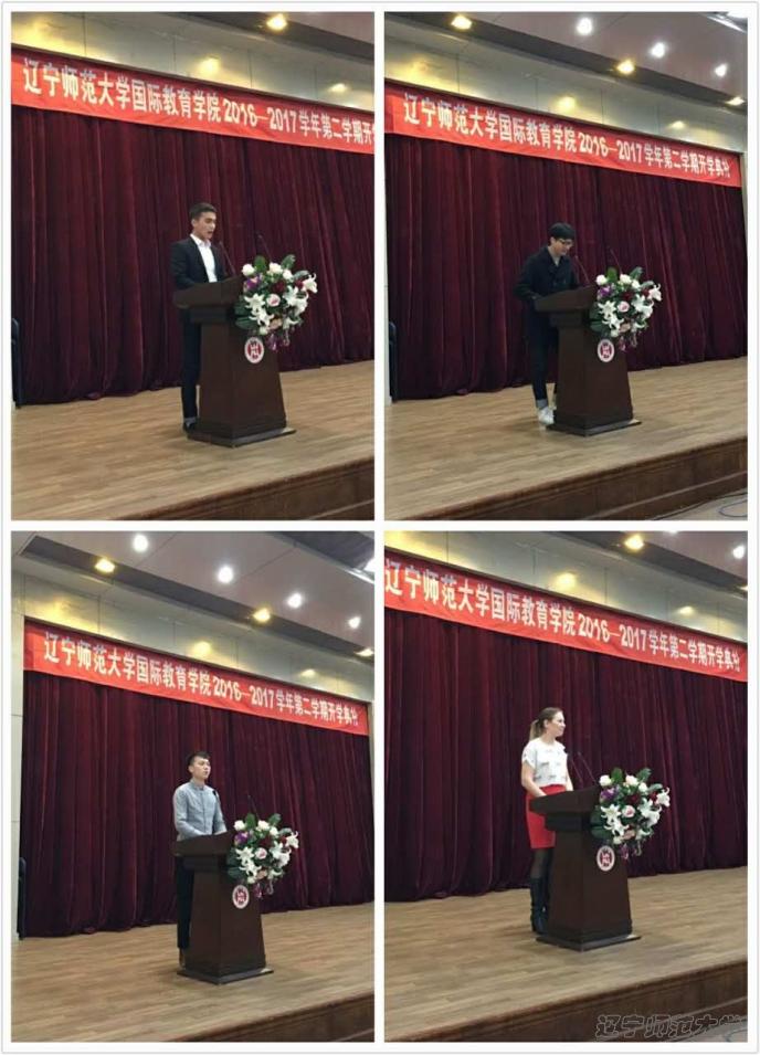 3月10日,国际教育学院2016-2017学年第二学期开学典礼在学术报告厅举行,莅临本次开学典礼的我院领导有国际教育学院关伟院长,姜凤岐书记,杨文升副院长,曹儒副院长,同时参加此次典礼的还有我院各位教师和中外学生。
