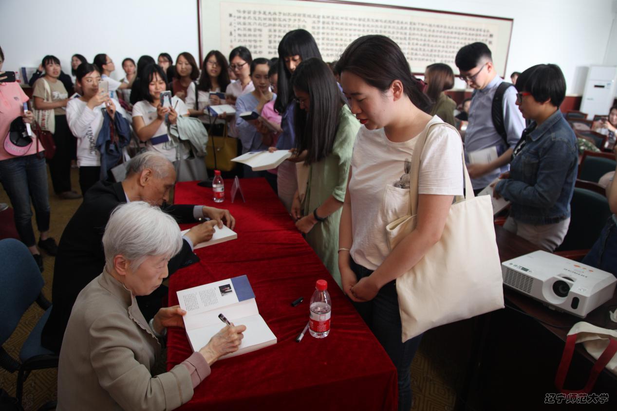 在专题讲座开始前,进行了授书仪式。陆俭明教授特别向国际教育学院惠赠由他与夫人马真教授合著、外研社出版的《汉语教师应有的素质与基本功》一书,国际教育学院副院长、曹儒副教授代表学院接受所赠书籍,并与陆俭明教授夫妇二人合影留念。