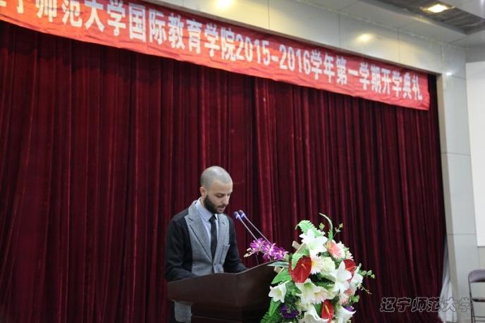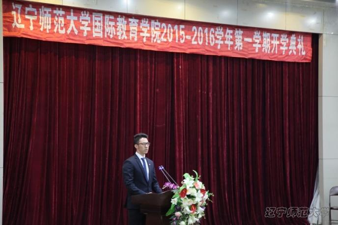 杨文升副院长首先致辞,对新生的到来表示热烈的欢迎。杨院长介绍了辽宁师范大学国际教育学院的基本情况、新学期教学工作安排,并对同学们提出五点希望:尽快适应环境,克服文化障碍;深入社会,增强跨文化交际能力;夯实专业基础,提高科研及教学能力;遵守纪律,健康生活;中外同学和谐相处,共同进步。
