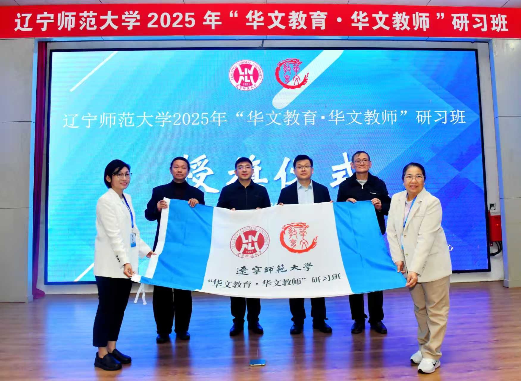 在授旗环节,辽宁省委统战部侨务工作处处长魏威与辽宁师范大学党委副书记徐昭峰向来自马来西亚、越南、澳大利亚和泰国的四名学员代表授予华文教育研习班旗帜。学员表示,将珍惜培训机会,与华文教育同仁共同探讨心得与经验,全面提升华文教育水平。