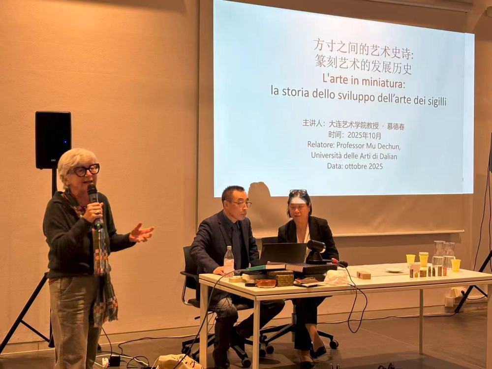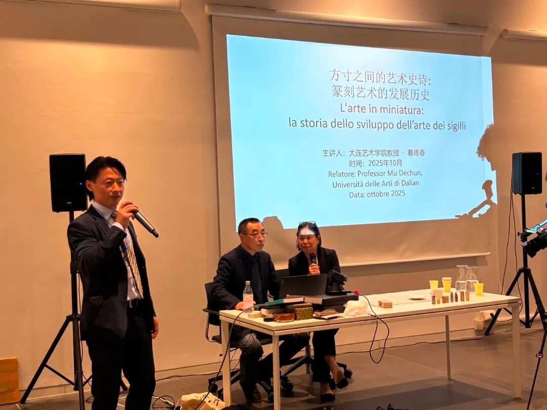 为弘扬中华优秀传统文化、促进中意人文艺术交流,米兰国立大学孔子学院近日举办“方寸之间的艺术诗——篆刻艺术专题讲座”,特邀辽宁师范大学教授、著名篆刻艺术家慕德春主讲,活动以讲座、演示与互动结合的形式,让意大利观众感受篆刻魅力与文化底蕴。